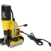 The Metabo KHEV 8-45 BL, 1-3/4″ SDS-MAX Brushless Combination Rotary Hammer is designed for maximum productivity, durability and safety for extreme duty use on construction and industrial work sites. The high efficiency 14.8 Amp AC Brushless motor is encapsulated to protect against harsh dust particles while delivering fast drilling and powerful chiseling in the toughest concrete and masonry applications. Metabo VibraTech (MVT) Technology provides ultimate user comfort with multiple levels of vibration protection including MVT active vibration control utilizing an internal counterbalance system to absorb impact from the tool, plus decoupled MVT vibration absorbing rear and side handles. The Metabo S-Automatic mechanical safety slip clutch disengages the drill in the event that a bit binds or jams to help prevent kick-back. A large, easy to use selector switch allows two modes of operation: hammer drilling and chiseling. The Metabo VTC electronics package provides speed stabilization, thermal overload protection, soft start, and power interruption protection. The tool also features a heavy duty die-cast aluminum gear-housing, a locking switch for use in chiseling mode only, and push-button speed/impact energy reduction for softer materials and to prevent spalling when drilling through-holes. For compliance with OSHA Respirable Crystalline Silica standards or Table 1 compliance standards, Metabo??s full line of concrete tools are designed for use with Metabo dust extraction attachments and vacuums. When used correctly they meet or exceed OSHA silica standards.