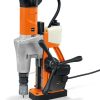 The Milwaukee 1-5/8 In. magnetic drill will deliver the fastest drilling and strongest hold on 1/4 In. steel in its class. It??s 13 amp motor delivers the fastest drilling w/ annular cutters or twist drill bits. Equipped with a 2-speed gear box the tool can be adjusted tool-free between annular cutters at 475 RPM and twist drill bits at 730 RPM. The permanent magnet base operates without electricity for continuous magnetic hold even during power interruption. Activating partial magnet mode with a 1/4 turn of the magnet nob allows for faster, easier hole alignment. This magnet technology makes the Milwaukee 1-5/8 In. magnetic drill better for vertical and overhead drilling applications than traditional electromagnetic models.
