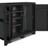 Heavy duty cabinets by JOBOX give you the power to organize your plant floor, jobsite, or maintenance bay easily. There are four models to choose from with varying capacity and door options. Cabinets include 7-gauge, one piece steel anti-tip skid bolsters with holes to install optional casters. The innovative foot operated latch gives you first class accessibility. The cabinets include access holes for electrical cables. The 1-697990 is a 5.75 ft. tall cabinet with 2 doors and open side and 47.5 cubic feet of storage.