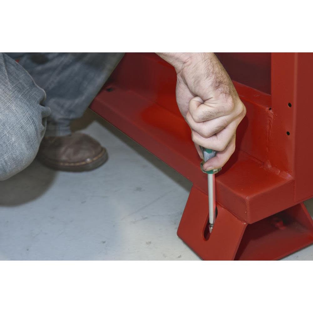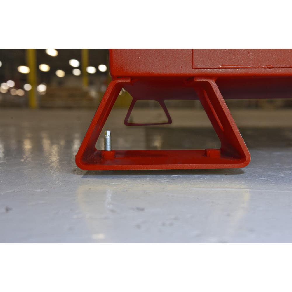 CRESCENT JOBOX? 7-gauge steel EZ-Level? skid bolsters come equipped with a leveling screw access hole to provide quick and easy access for leveling your cabinet