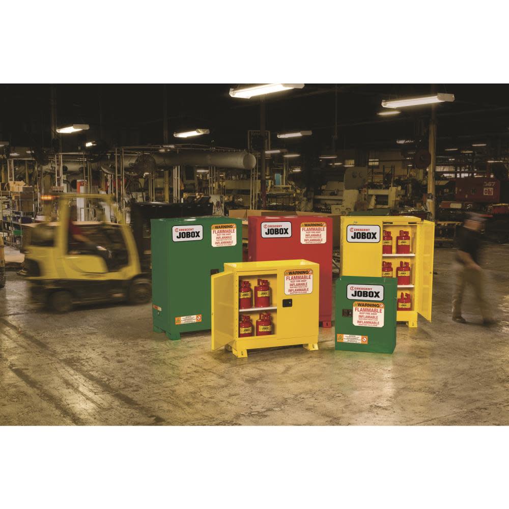 Keep paints and inks organized, secure, and protected from fire with UL Listed CRESCENT JOBOX? safety cabinets. With exclusive features like the ez level? bolsters, permanent safety labels, and white interior shelves, these cabinets offer the improved safety, security, and durability that professionals expect from every CRESCENT JOBOX? storage product.