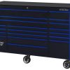 Extreme Tools 41 In. 6 drawer stainless steel slide top tool cart, matte black with gloss black drawer pulls.