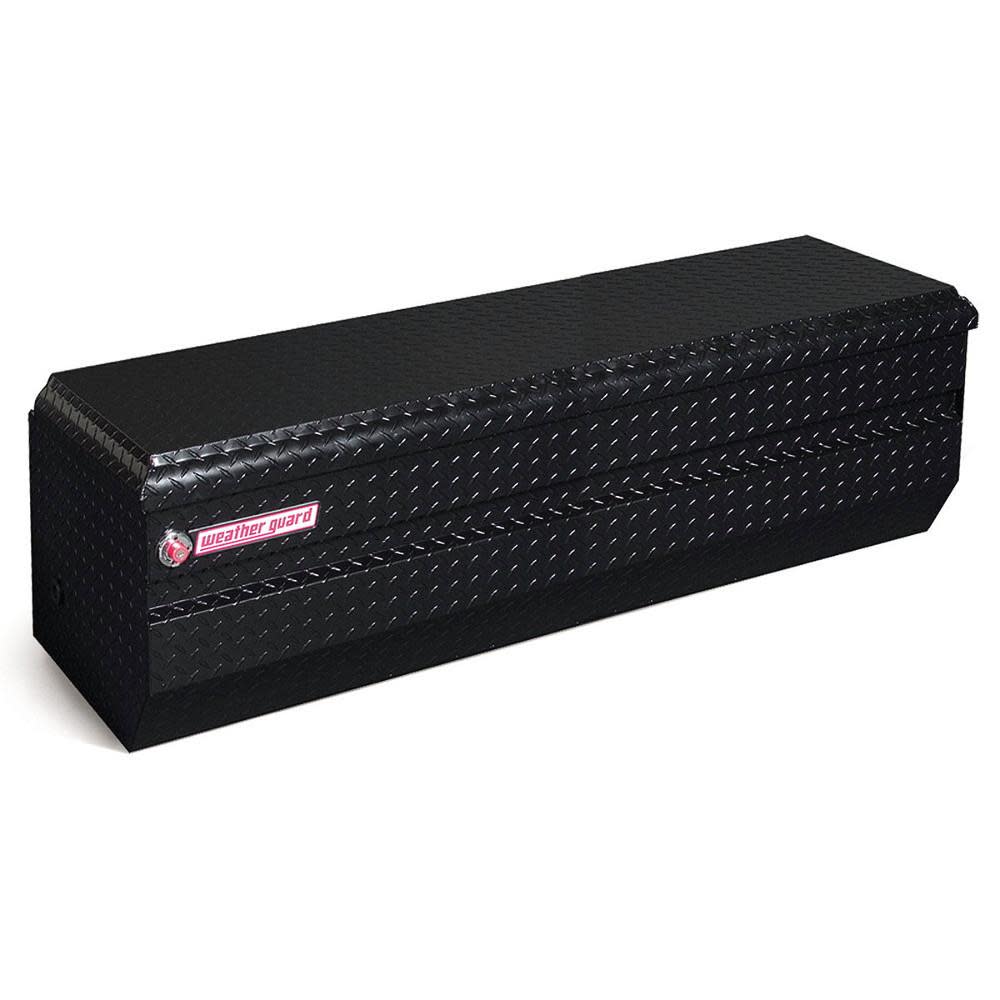 Whether hauling livestock or toting your camper, the angled body of this 12 Cu. Ft. Weather Guard truck tool box leaves room for your goose neck trailer while remaining conveniently accessible. The zero-clearance 90?? cover means the back of the chest can sit flush with the front of the pickup bed and not hinder opening, and a tamper-resistant EXTREME PROTECTION? Lock retracts to prevent break-ins. The aluminum construction boasts a black Armor-tuf? powder coat finish to ensure years of durability, and the automotive-style rotary latch mechanism keeps the cover tight against the full weather seal to shield your gear from the elements.