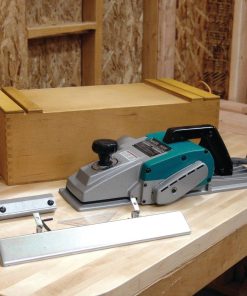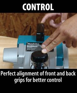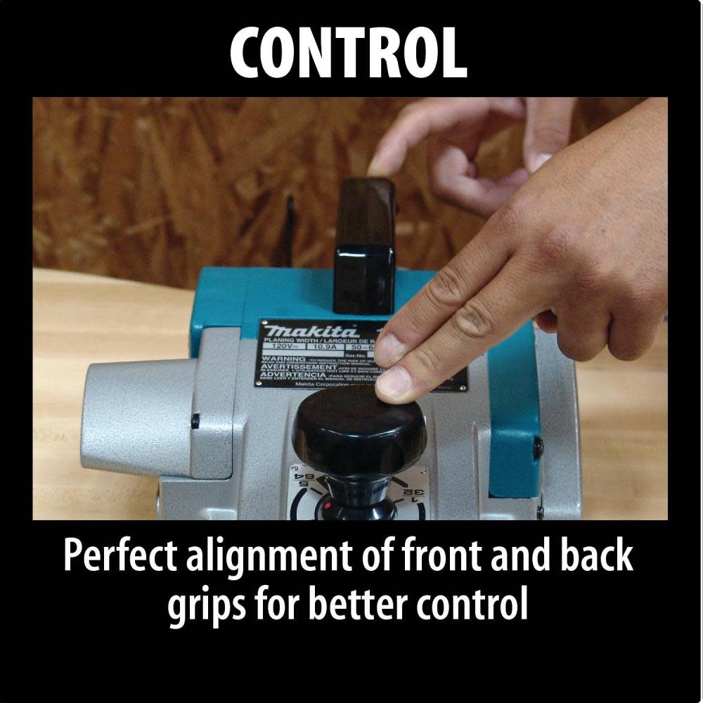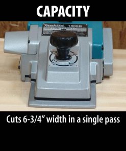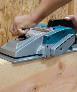 The Makita planer cuts up to 6-3/4 Inch wide logs in a single pass and is known for its power, size and performance. It is powered by a 10.9 Amp motor and operates at a speed of 30,000 OPM. The front and rear grips are aligned perfectly to provide a better operating control. The easy-to-use handle makes it smoother to adjust the planning depths. The large and strong sole plate gives good stability. Machine base is made from strong aluminum for accurate cutting results. The lock-on button prevents accidental initiation and ensures continuous operation. Double insulated design offers good user safety. Planer comes with a planer blade, triangular rule, bevel guide, hex wrench, sharpening holder assembly and a tool case.