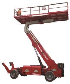 Titan 60-S is like having your own personal workshop in the sky. This 60ft platform height telescopic Titan Boom lift is designed to deliver 3,000 lbs. capacity on a 22 ft. x 90 in. ultra deck platform with boom outreach and rotation. The Titan 60-S is like 3 machines in 1 with the lift capacity of a telehandler, the work area of an ultra deck scissor lift, and the reach and rotation of a 60 foot boom. Elevate up to 4 workers with materials to eliminate the need for extra trips to the ground. Three steering modes gets in close to work areas with 2-Wheel Steer, 4-Wheel Steer, and Crab Steer. Titan Boom, a titan of a machine that’s revolutionizing construction.