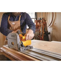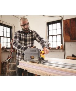 The DCS520 60 V MAX* 6-1/2 In. TrackSaw kit easily Powers through hardwoods up to 2-1/8 In. thick. Features straight plunge mechanism for optimal ergonomics. For use with TrackSaw cutting system to deliver precise, straight, splinter-free cuts.