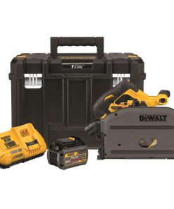 The DCS520 60 V MAX* 6-1/2 In. TrackSaw kit easily Powers through hardwoods up to 2-1/8 In. thick. Features straight plunge mechanism for optimal ergonomics. For use with TrackSaw cutting system to deliver precise, straight, splinter-free cuts.