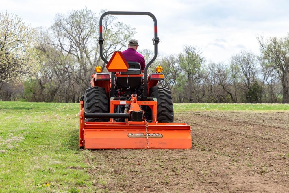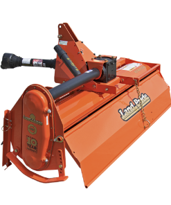 The Land Pride RTR12 reverse-till rotary tillers turn the soil to prepare a seedbed for gardening or lawn seeding. With uses in landscaping, gardening, and other residential applications, the RTR12 series offers an economical tilling solution. The RTR12, and all Land Pride reverse rotation tillers, tends to achieve greater depth of penetration, moving and pulverizing more soil in the process, while burying residue as opposed to leaving it on top. The solid steel shaft provides extra strength to the rotor and the RTR12 offers offset capabilities, allowing the tiller to work closer to objects such as fence lines, buildings and trees. Note: quick-hitch may require a longer driveline, which is available through Land Pride parts.