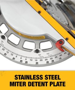 7-1/4″ Single Bevel Sliding Compound Miter Saw – Adjustable stainless-steel miter detent plate, with 11 positive stops, improves productivity and ensures cutting accuracy. Oversized bevel scale makes bevel angle adjustments accurate and easy.