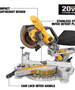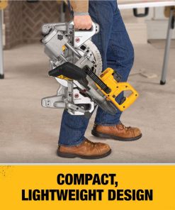 7-1/4″ Single Bevel Sliding Compound Miter Saw – Utilizes 20-volt max battery pack (DCB204), which provides on average, 183 cuts of 2 x 4 pine or 275 cuts of 3-1/4-in pine baseboard.