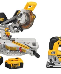 7-1/4″ Single Bevel Sliding Compound Miter Saw and 20-Volt Max Brushless Variable Speed Keyless Cordless Jigsaw Kit