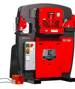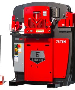 The Edwards 75 ton jaws ironworker offers you greater capacity to accomplish larger tasks. Its standard features include a punch assembly with pedestal die table, a 14 In. wide flat bar shear, angle shear and coper notcher. The punch assembly is easily converted to an open station designed to accept optional tooling accessories, allowing flexibility to customize your ironworker according to your needs. The factory installed PowerLink system allows your ironworker to act as a power source to our expanding line of innovative PowerLink hydraulic tools, such as the 10 ton tube/pipe bender, 20 ton shop press and 40 ton shop press.