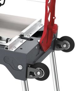 This light and inexpensive tile saw is perfect for professionals and DIYs. Designed to cut ceramic and porcelain tiles. Built-in folding legs. Comes with wheels and handle for a more comfortable transport and handling. External water tank, easy to handle and clean. Bi-material handle, better ergonomics. Motor assembly mounted on sliding bearings and folding for mitre cuts. With lateral stop for repetitive cuts and adjustable square from 0 to 45??. Direct drive and reinforced chassis. Corrugated tube to protect power cable and water pipe.