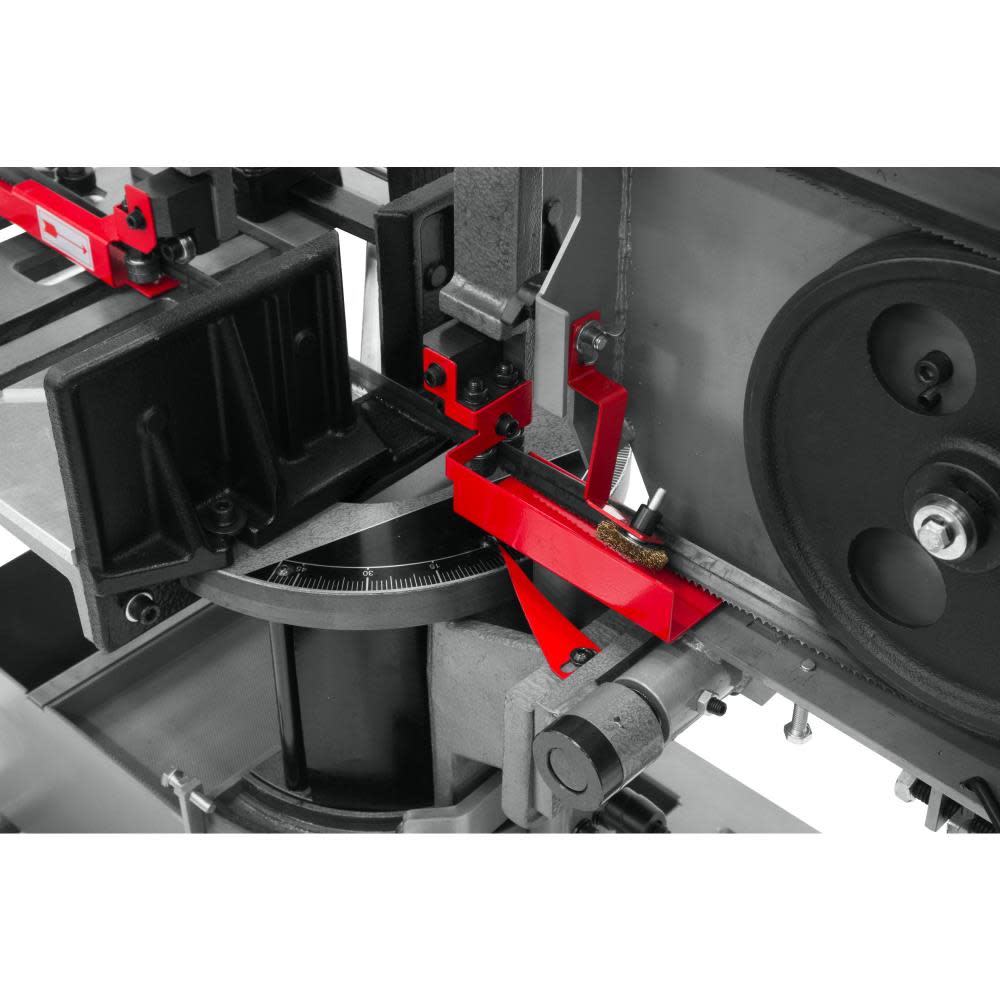 Built in, self propelled blade brush prevents chip build up in blade guides