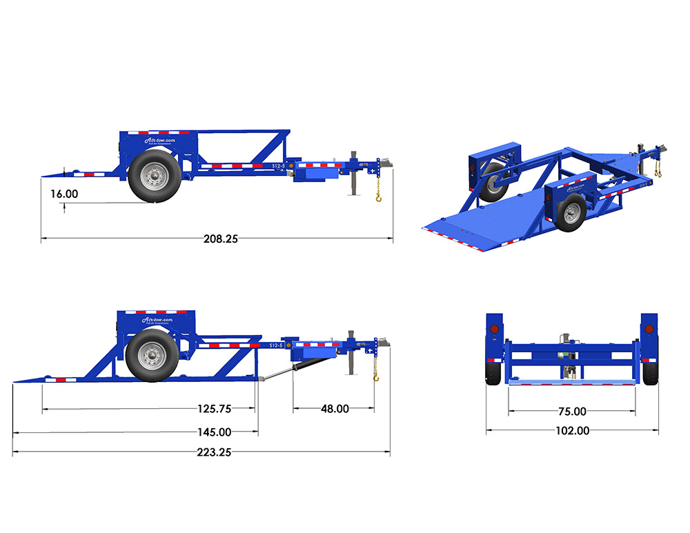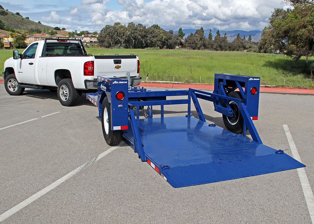 The unique Air-tow flatbed uses a totally different concept to make loading easier and safer. The trailer deck remains completely level as it raises and lowers hydraulically in less than 30 seconds. At ground level, you simply drive your equipment onto the trailer. Good for scissor lifts, sweepers, pavement rollers, etc. Air-tow eliminates the need for difficult tilt beds or dangerous loading ramps, making it a one-person job even in adverse weather. Specifications: Load Capacity 5,500 lbs., Trailer Weight 2,770 lbs., GVWR 8,270 lbs., Overall Width 102″, Deck Length (w/Ramp) 144″, Ramp Size 18″, Number of Axles 1, Brakes Electric (1 axle), Suspension Air, Lift Mechanism Hydraulic, Paint Color Royal Blue. Acme Equipment is committed to providing the best available products at consistently competitive prices. We strive to bring you a first class “Acme” shopping experience by applying our time, knowledge, and skill to maximize your satisfaction every step of the way. At Acme Tools, we help you Do Your Best Work?.