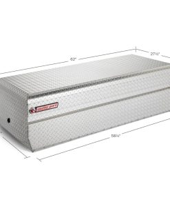 Organize your truck-bed with the WEATHER GUARD? Aluminum Full-Size Extra Wide All-Purpose Chest. This unit includes 18-3/5-cubic feet of protected storage space. It measures 19-1/4-inches (H) by 27-1/2-inches (W) by 62-inches (L) and installs directly below the truck’s rear-window to keep your sight lines clear. The Weather Guard tool chest includes EXTREME PROTECTION? locks that protect your gear when you leave the vehicle. The unit’s full weather-seal keeps its internal storage space dry and its lid opens to a full 90-degrees and gives you full access from any direction. An ARMOR-TUF? coating covers the exterior surface to protect the aluminum chest from rain and snow damage.