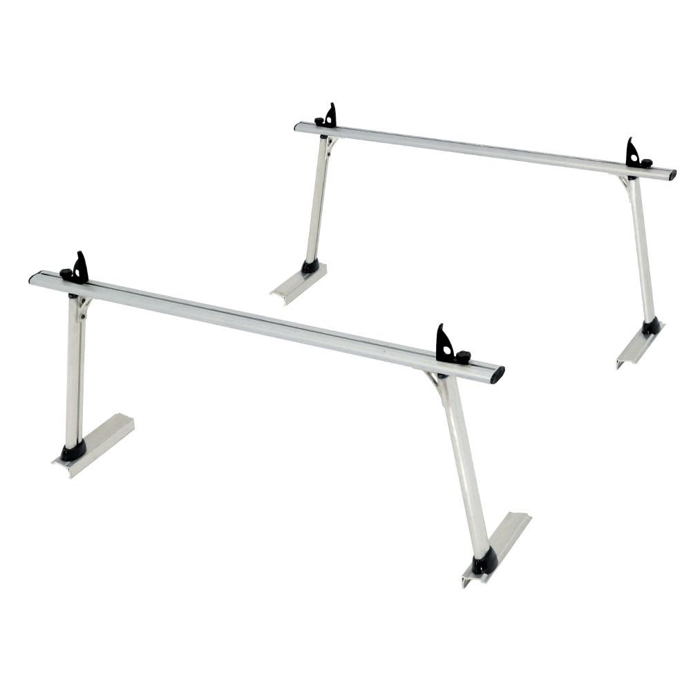 The TR701-A Werner aluminum truck rack for most full size and compact pick-up trucks securely mounts on top of the truck bed with compression clamps. The professional grade aluminum truck rack is easy to install with no drilling required. Included with the rack are 4 plastic ladder stops that slide easily into the cross members. Maximum load capacity is 800 lbs. evenly distributed.