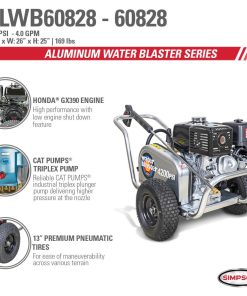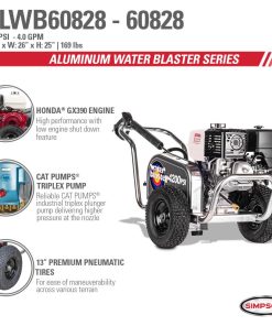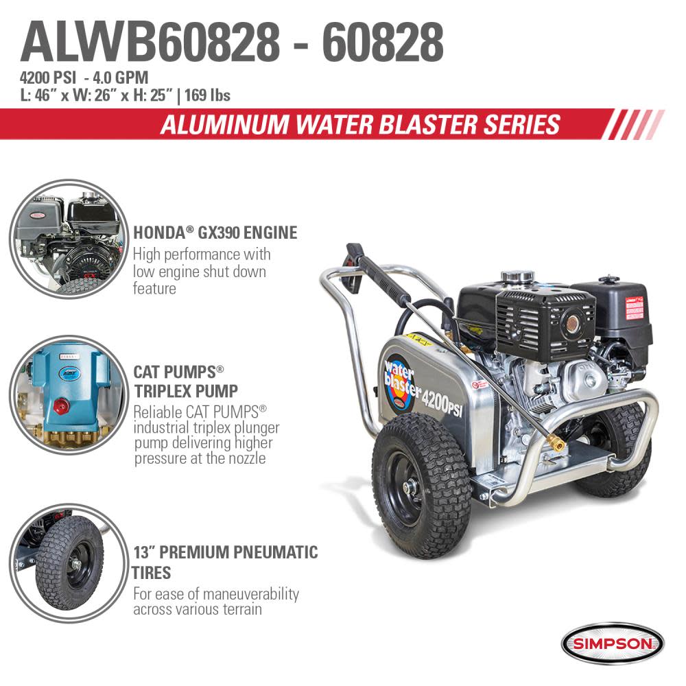 Designed to meet the rigorous demands of the cleaning professionals, the Simpson aluminum water blaster series frame is crafted of aircraft-grade aluminum, making it lighter in weight than most steel frame pressure washer designs. Perfect for contractors who specialize in deck cleaning, wood restoration, paint preparation, graffiti removal, and all other professional cleaning services. The Simpson Aluminum water blaster series is designed for optimum performance in the harshest environments.