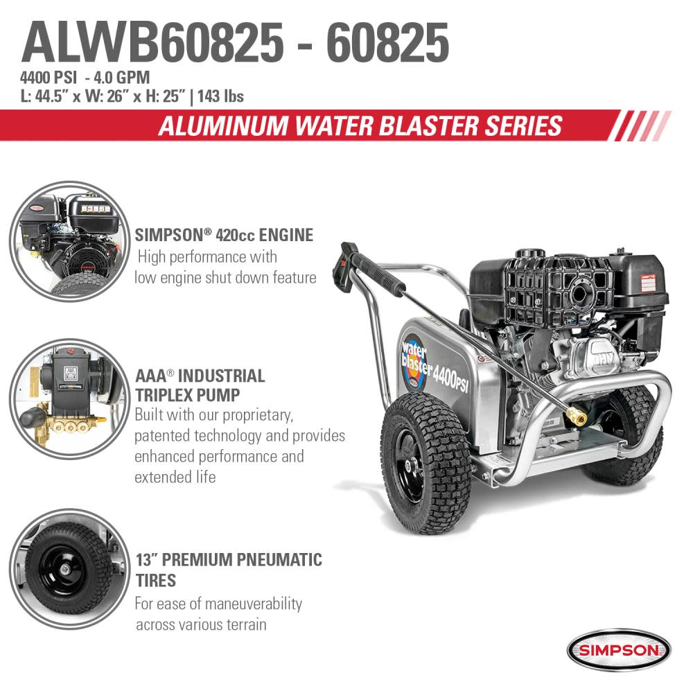 Aluminum Water Blaster 4400 PSI at 4.0 GPM SIMPSON 420 with AAA Triplex Plunger Pump Cold Water Professional Belt Drive Gas Pressure Washer (49-State)