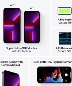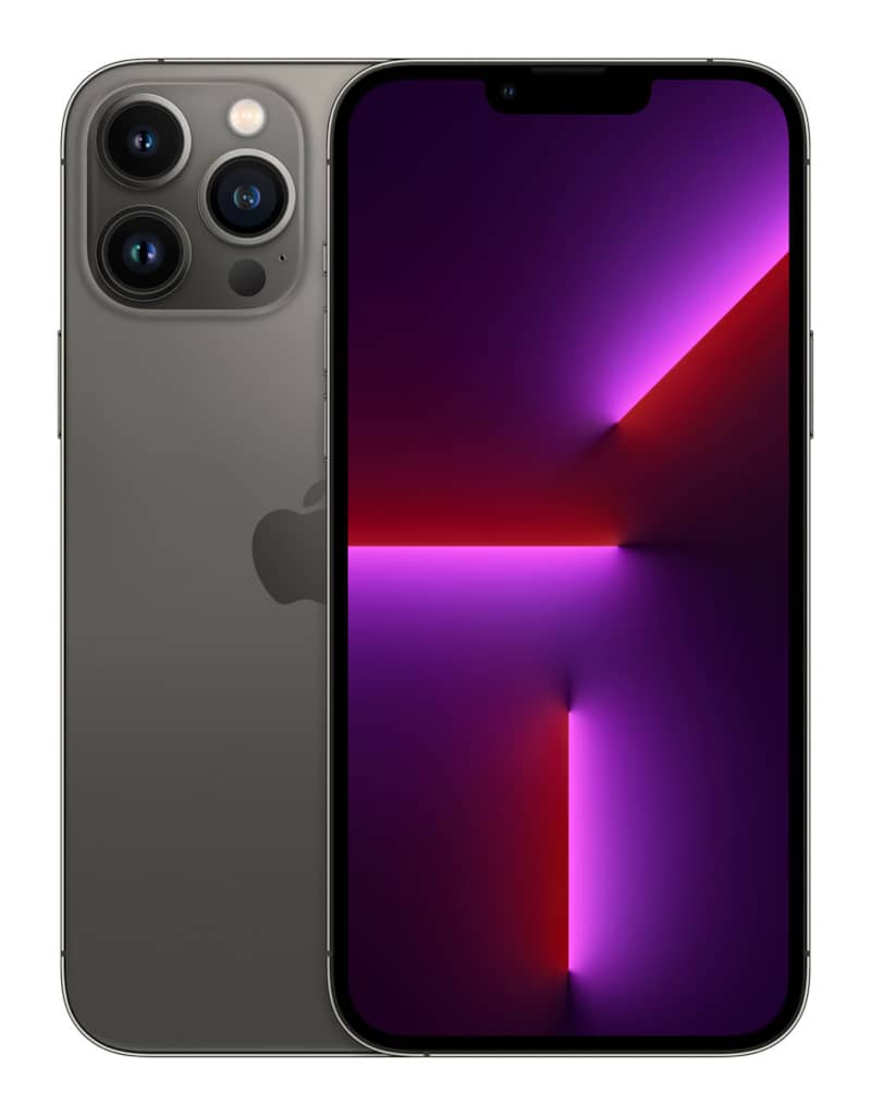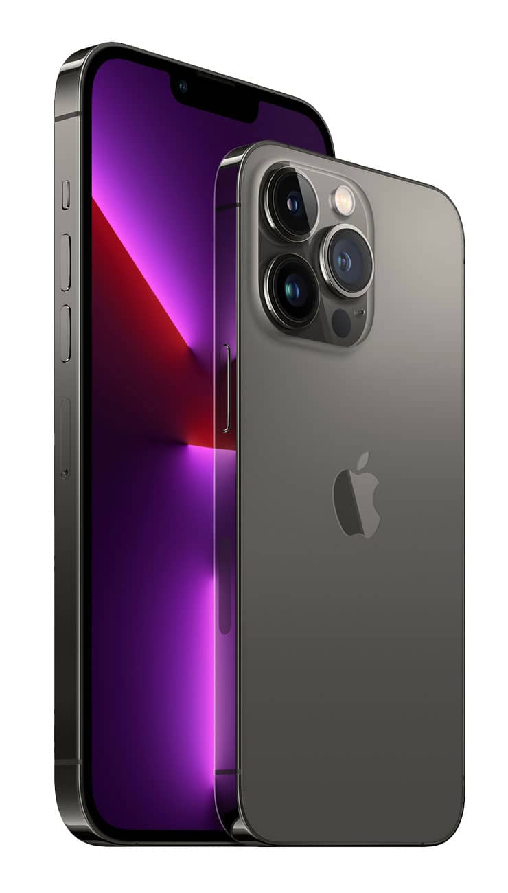 Graphite Apple iPhone 13 Pro Max 128 GBThe game has been changed with the advent of the iPhone 13 Pro Max. The largest physical size of the newest Apple device is built to accommodate all the technology within, like the A15 bionic chip and completely re-imagined camera system. The OLED screen showcases the darkest black levels and intense color systems, with no need for a backlight and the ability to turn off each pixel individually. Stream your favorite shows in HDR, capture photos in stunning reality, and even pilot your own cinematic films. This entry-level model comes at an affordable price point for 128 GB of storage. High-Powered Camera: Telephoto, Wide, Ultra-WideProfessional cinematographers and photographers won’t need to haul around heavy equipment in the future. This shining graphite 8.5 oz iPhone 13 Pro Max is big enough to hold the A15 chip’s high-performance processing dual cores, but small enough to capture the perfect scene at a moment’s notice. Features like macro photography, multiple zoom levels, cinematic mode, night mode and more all make this the perfect device for the budding artist (or the professional). Extended Battery LifeThe iPhone 13 Pro Max is designed with one of Apple’s strongest batteries yet. You’ll be able to go all day long (or longer) without charging. Up to 28 hours of video playback and 95 hours of audio playback will have you enjoying long flights and longer drives with no fear of running out of power. Need more juice fast? Quick charging capabilities will have your device powered back up to 50% in 30 minutes with help from a 20W adapter. Questions about storage, size, style and color? Give the experts at our Apple store a call at 800-860-3577 to learn more about all that this mighty pocket device can manage. Alternatively, head into the store to see our options in person, or do some research at home with our Cell Phone Buying Guide. Key Features