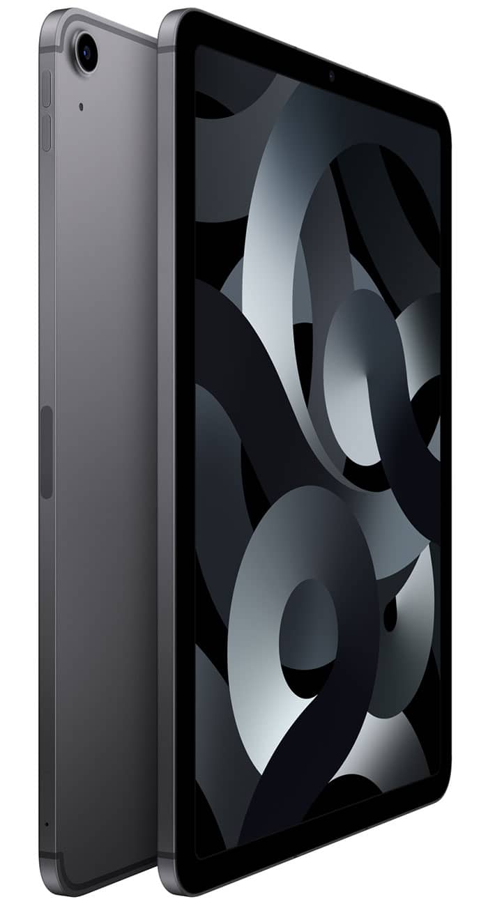 Apple MM713LL/A iPad Air 256GB Wi-Fi + Cellular Space Gray (2022)iPad Air (5th generation) features Apple??s breakthrough M1 chip that unlocks nextlevel performance in a thin and light, all-screen design. It has an immersive 10.9- inch Liquid Retina display and is available in five gorgeous finishes. The Ultra Wide front camera with Center Stage keeps you in the frame for more engaging video calls, and the Wide back camera shoots beautiful photos and videos. Stay connected with ultrafast 5G and Wi-Fi 6, and expand the capabilities of iPad Air with Apple Pencil (2nd generation) and Magic Keyboard.1 And with Touch ID on the top button, faster USB-C, iPadOS 15, and more than a million apps on the App Store, iPad Air delivers advanced features and versatility. It??s perfect for those looking to step up to an even more powerful and capable iPad. Features All-Screen Design