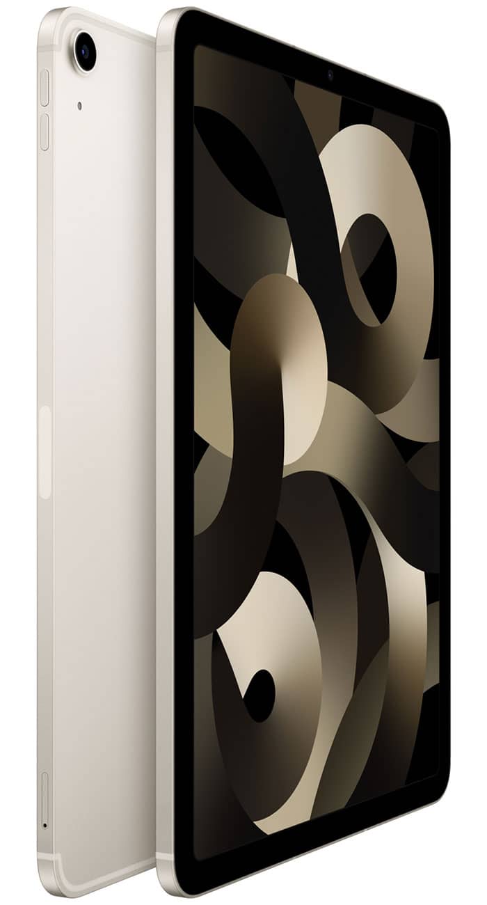 Apple MM743LL/A iPad Air 256GB Wi-Fi + Cellular Starlight (2022)iPad Air (5th generation) features Apple??s breakthrough M1 chip that unlocks nextlevel performance in a thin and light, all-screen design. It has an immersive 10.9- inch Liquid Retina display and is available in five gorgeous finishes. The Ultra Wide front camera with Center Stage keeps you in the frame for more engaging video calls, and the Wide back camera shoots beautiful photos and videos. Stay connected with ultrafast 5G and Wi-Fi 6, and expand the capabilities of iPad Air with Apple Pencil (2nd generation) and Magic Keyboard.1 And with Touch ID on the top button, faster USB-C, iPadOS 15, and more than a million apps on the App Store, iPad Air delivers advanced features and versatility. It??s perfect for those looking to step up to an even more powerful and capable iPad. Features All-Screen Design