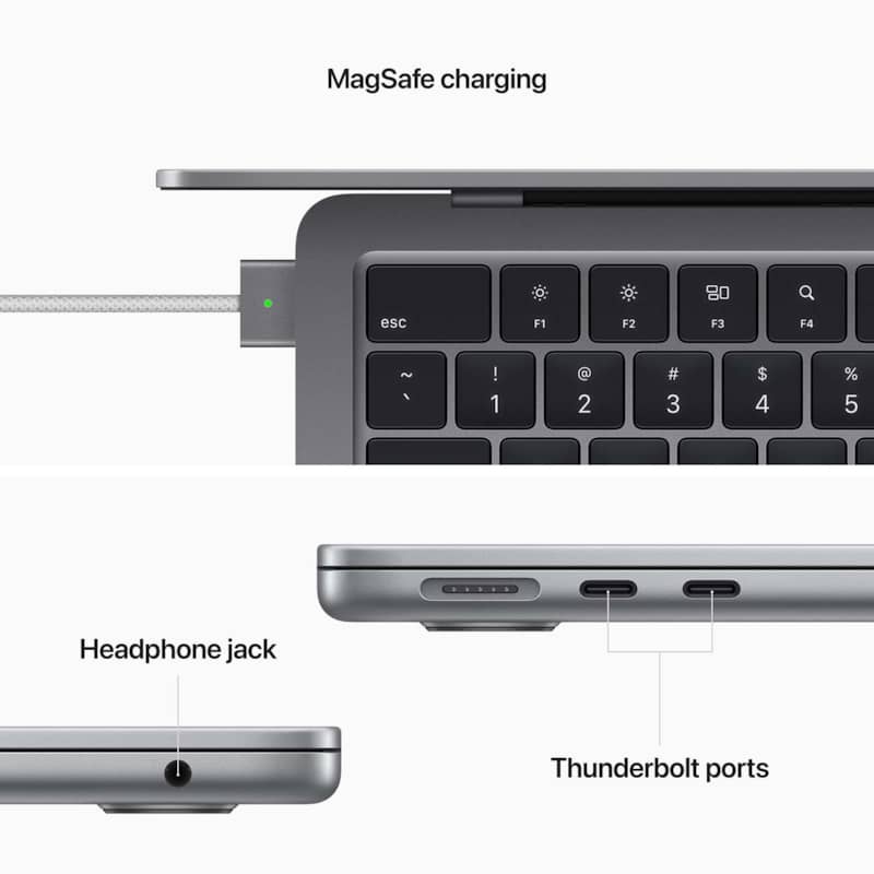 Apple MacBook Air 13.6″ Space Gray Notebook Apple M2 Chip 8GB Unified RAM 256GB SSD (Mid 2022)