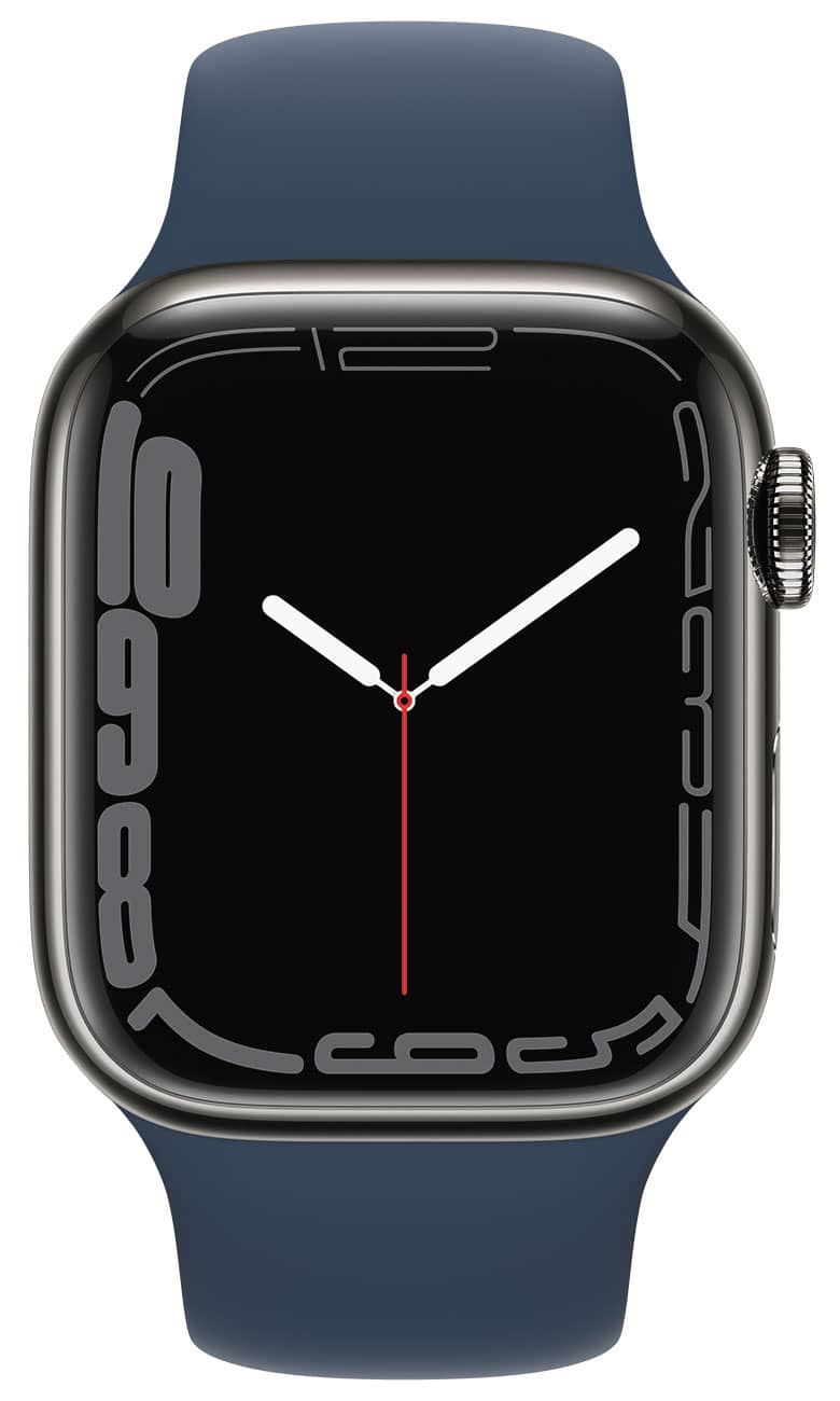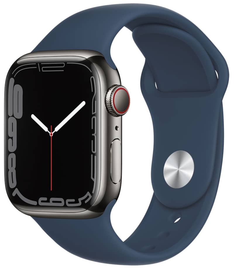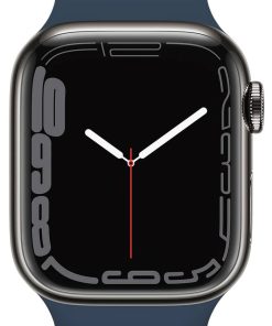 Apple MKHJ3LL/A Watch Series 7 GPS & Cellular 41mm Graphite Stainless Steel Case With Abyss Blue Sport BandApple Watch Series 7 has the largest, most advanced display??with more screen area, thinner borders, and a unique refractive edge for a subtle wraparound effect. It??s also the most durable Apple Watch ever, with the most crackresistant front crystal and, for the first time, IP6X certification, so it??s fully dust resistant. And it charges faster than ever, so you can go from 0 percent to 80 percent battery in about 45 minutes.1 With these features, the ECG app,2 Blood Oxygen app,3 watchOS 8, and more, Apple Watch Series 7 is the most powerful Apple Watch yet. And with cellular,4 you can call, text, or stream music from anywhere??all with just your watch. Features