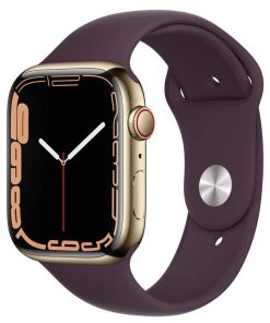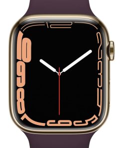 Apple MKJF3LL/A Watch Series 7 GPS & Cellular 45mm Gold Stainless Steel Case With Dark Cherry Sport BandApple Watch Series 7 has the largest, most advanced display??with more screen area, thinner borders, and a unique refractive edge for a subtle wraparound effect. It??s also the most durable Apple Watch ever, with the most crackresistant front crystal and, for the first time, IP6X certification, so it??s fully dust resistant. And it charges faster than ever, so you can go from 0 percent to 80 percent battery in about 45 minutes.1 With these features, the ECG app,2 Blood Oxygen app,3 watchOS 8, and more, Apple Watch Series 7 is the most powerful Apple Watch yet. And with cellular,4 you can call, text, or stream music from anywhere??all with just your watch. Features