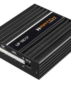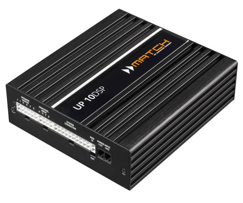 Audiotec Fischer UP 10DSP Match 10-Channel AmplifierThe premium sound upgrade for multi-channel factory systems The new UP 10DSP is a real problem solver when it comes to upgrading premium sound systems in today’s vehicles. Even though more and more vehicles are equipped with complex multi-channel sound systems ex works, the sound quality does not always meet one’s expectations. Maximum connectivity For optimal adaptation to existing multi-channel sound systems, the UP 10DSP is equipped with not less than 8 highlevel inputs (two high power inputs with up to 32 Volts), an optical digital input, a MATCH extension card slot, 10 amplifier outputs and a total of 11 processed DSP channels. Virtual Channel Processing ?C that??s how signal routing works today The adaptation to modern OE sound systems via an increasing number of inputs has a significant impact on the complexity of the signal routing inside the amplifier. Especially when several input signals are mixed together and then split again into multi-way systems, conventional routing concepts quickly reach their limits, both in terms of implementation and usability. Audiotec Fischer’s new multi-stage “Virtual Channel Processing”, in conjunction with the recognized user-friendly DSP PC-Tool software makes it easy to realize even highly complex system configurations. Besides, it allows to freely assign our proprietary FX sound features such as “RealCenter” or “Augmented Bass Processing”. But the UP 10DSP, thanks to its enormous number of channels in combination with the optional MEC ANALOG IN module, is also a prime example for applications where 1 to 1 routing (IOR) makes sense. Speed is everything ?C thanks to ACO Such a huge number of channels requires ultra-fast hardware ?C Audiotec Fischer’s proprietary 32 Bit ACO platform takes care of all control tasks and ensures the decisive speed increase, especially for data communication with our DSP PC-Tool software but also for the lightning-fast switching between up to ten sound setups. But ACO offers much more ?C fantastic sound effects such as Augmented Bass Processing or RealCenter are implemented as well as a channel-separated Input EQ including the Input Signal Analyzer (ISA) for easy analysis and compensation of input signals of OE radios. Powerhouse in a compact format Despite its huge output power of 8 x 65 Watts at 4 Ohms and 2 x 90 / 160 Watts at 4 / 2 Ohms at the Sub Outs, as well as the enormous feature set, the UP 10DSP comes in an extremely compact design, so that installation is possible even in confined spaces. Key Features