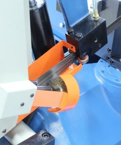 We built this semi-automatic dual miter band saw with a cast iron bow and steel frame to offer decades of reliable quality. Its hydraulic system will speed up production and save you effort.