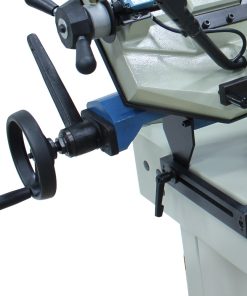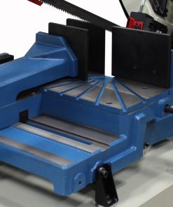 Need to cut at multiple angles in both directions? This dual-mitering band saw has a cast iron head and bow that can swivel 60 Deg right and 45 Deg left.