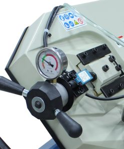 Manual descent mode – for small production runs, perfect for small or medium sized fabricators?? needs, turn on the machine via a trigger switch in the descent handle, manually guide the band saw blade through the material