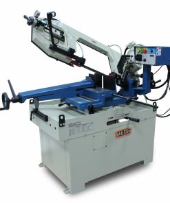 Need to cut at multiple angles in both directions? This dual-mitering band saw has a cast iron head and bow that can swivel 60 Deg right and 45 Deg left.