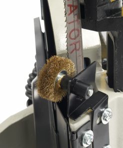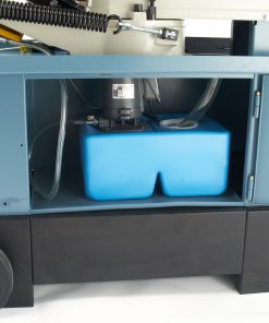 Wheels on the base make this saw easy to move and store, comes standard a flood coolant system, often considered an upgrade by other brands, and a chip removal brush