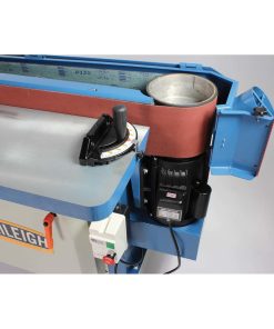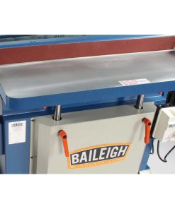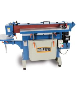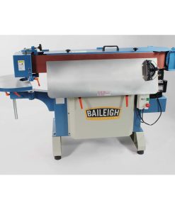 The ES-6108 from Baileigh Industrial is the little brother of the ES-9138 oscillating edge sander. Many of the same features were carried over making this one of the best values on the market. A 220V 1 Phase 2HP motor powers the belt and runs a large gearbox to provide the oscillating action. At 24 oscillations per minute the ES-6108 allows you to use the entire belt face to lengthen belt life. It features a large 6 In. wide belt that is 108 In. long and has a quick change system. To extend belt life the ES-6108 has a sturdy platen is cast iron and is covered with graphite for production sanding. Using graphite offers great support and cooler running temps to extend belt life. The table on the ES-6108 is 36 In. x 12 In., one of the largest in its class. It also tilts negative 5 Deg and to positive 45 Deg. The whole head will tilt to run horizontal or vertical as well and the radii can be shaded on the end of the ES-6108 as well. An integrated stand and dual 4 In. dust collection ports are also included.