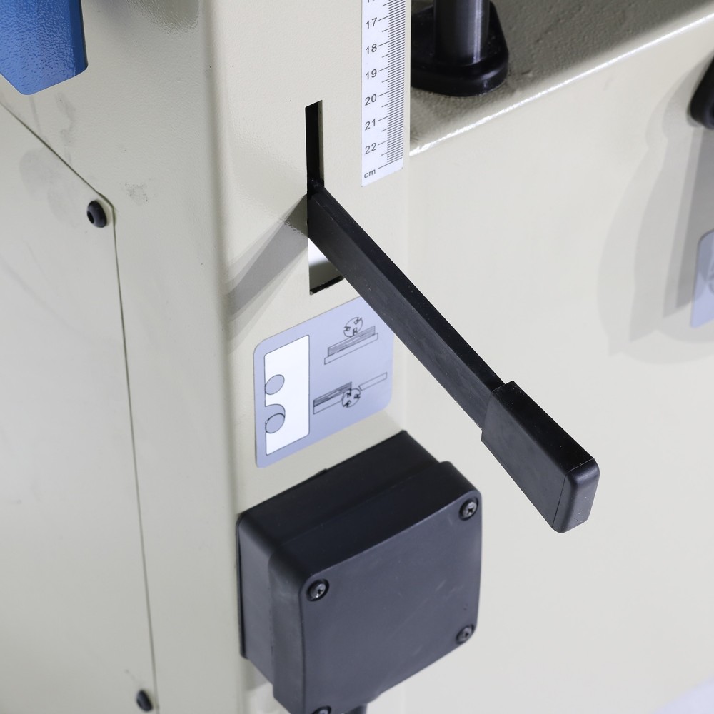 Extra-large rack and pinion aluminum fence can adjust to any angle between 45 Deg and 90 Deg, large handwheel allows you to raise the planer table quickly and precisely