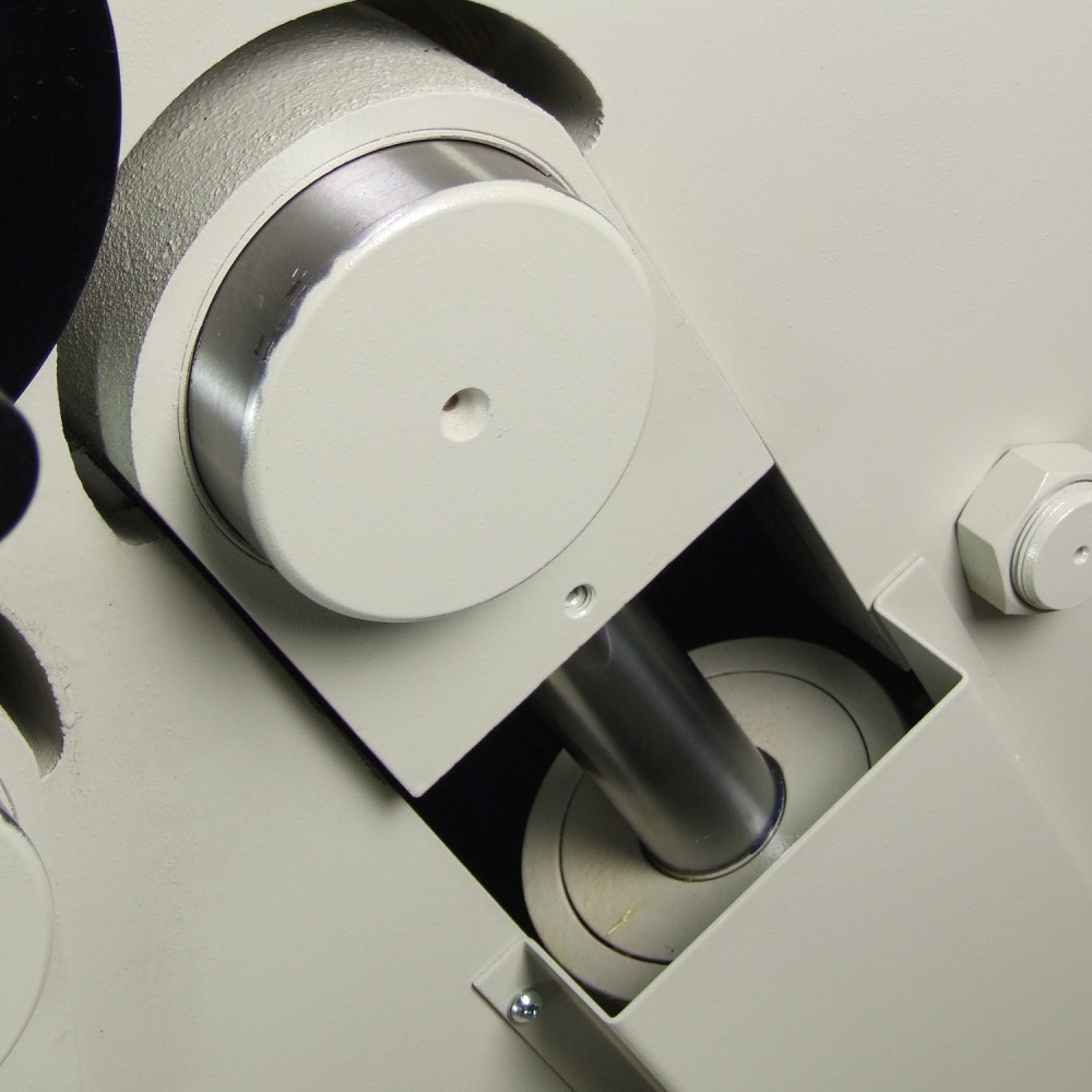 Quick-release mechanism on the top roll makes it simple to remove work that??s wrapped around roll
