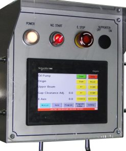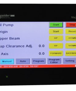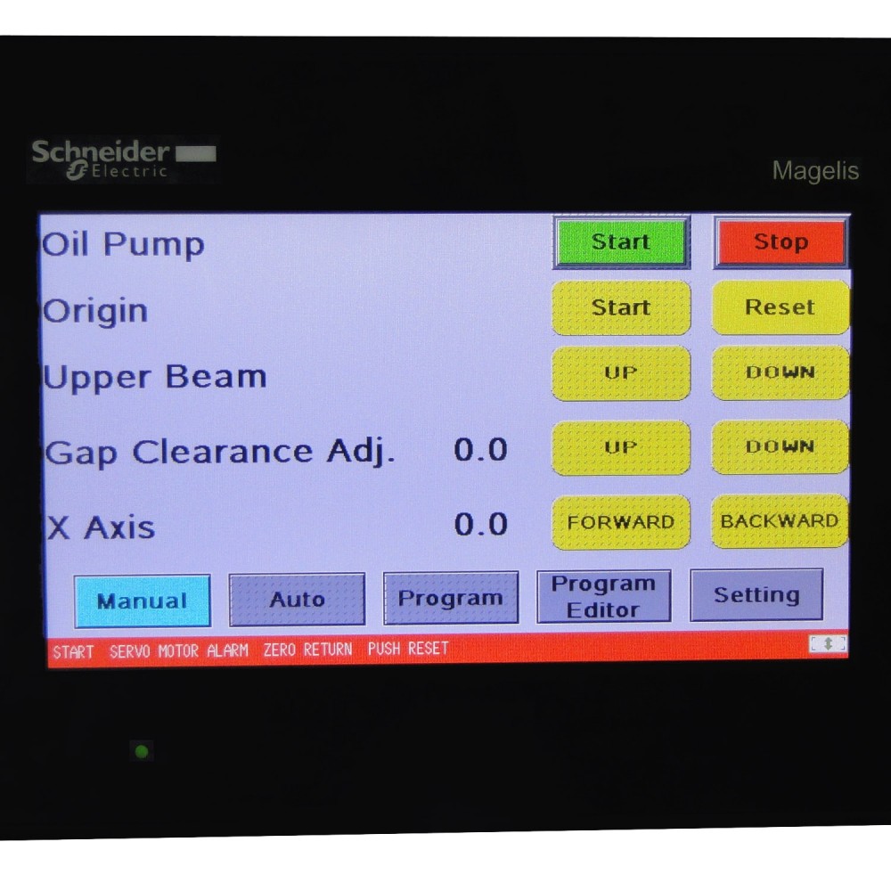 Touchscreen NC controller, made by Schneider, and foot pedal make this shear easy to operate