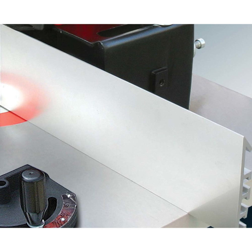 An integrated 4 In. dust collector is incorporated into the fence as well as a cutting safety guard