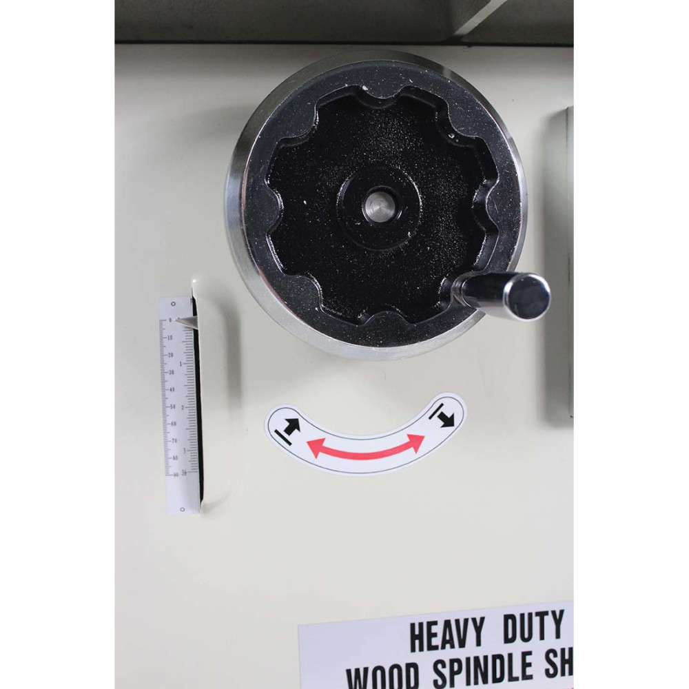 This spindle shaper is powered by a 5HP 220V 1 Phase motor