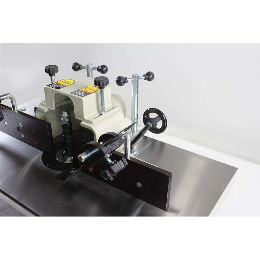 The SS-3528 3 spindle shaper from Baileigh Industrial is a great addition to any shop. This is the first in the 3528 series and is the most economical in the series. This spindle shaper is powered by a 5HP 220V 1 Phase motor that offers four spindle speeds. Speeds are changed by selecting the appropriate belt for the speed desired. Speeds offered are 3600, 5100, 8000, and 10000 Rpm. The SS-3528 includes 3 spindles, 3/4 In., 1 In. and 1-1/4 In. all with corresponding inserts.
