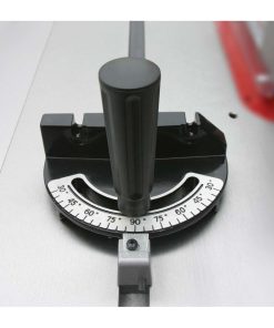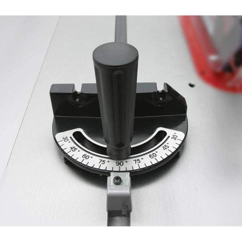 2 steel handwheels on the cabinet allow you to change the blade height and the miter angle, miter gauge located on base