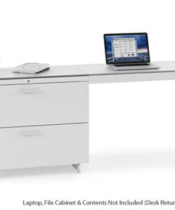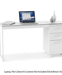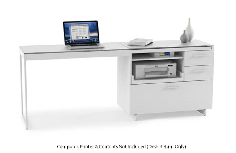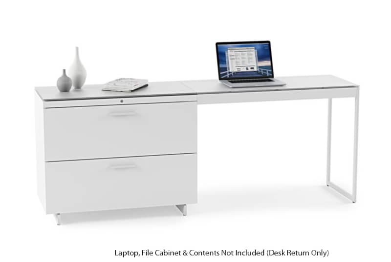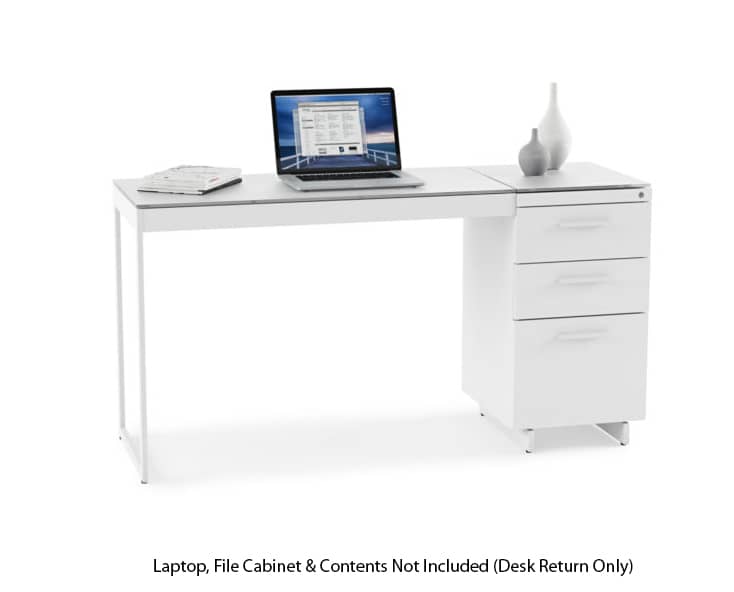 BDI Centro 6402 Satin White on Oak/ Grey Glass Desk Return