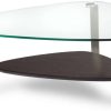 BDI DINO1344W Dino Small Triangular Coffee Table In Gloss WhiteA small coffee table that features a soft, triangular shape, making it a versatile choice wherever a smaller footprint is desired. The soft, triangular shape of the Dino 1344 Small Coffee Table coordinates with a variety of upholstery sizes and configurations and is ideal for use with a sectional sofa. Smaller than the larger 1343 model, this table is available in four finishes. The tempered glass top and beveled lower shelf are securely attached to satin-nickel steel legs??partner with the 1347 End Table. Footnotes: