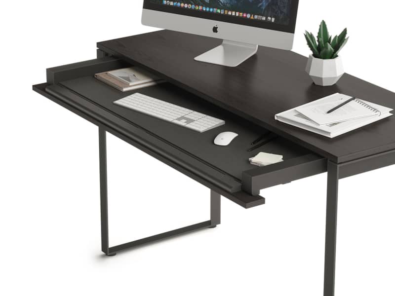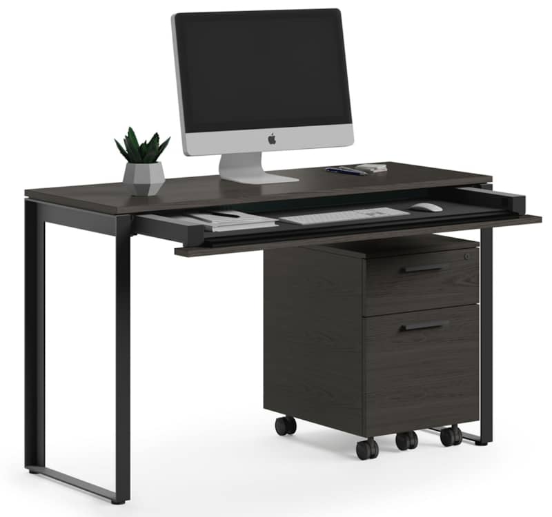 BDI 6222 CRL Linea Console Desk In Charcoal Stained AshThe Linea Console Desk features a slim yet functional design that is perfectly at home used in an entryway, as a compact workspace or neatly placed behind a sofa. The BDI Linea 6222 Console Desk features a slim yet functional design that can be used in an entryway, as a compact workspace, or neatly placed behind a sofa. This modern console desk is perfectly sized for a laptop computer or wherever a slim footprint is required. Features include a generously sized keyboard and storage drawer with flip-down front, wire management straps, and cable routing channel – pairs with the Linea 6227 mobile file pedestal for a more organized and efficient small office space. Wow from Home Features