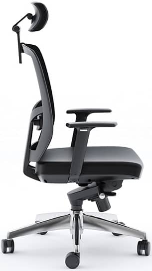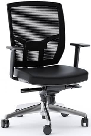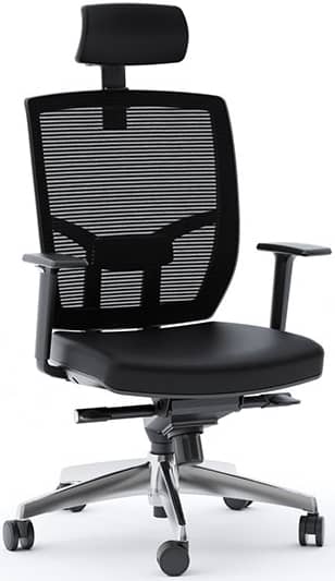 BDI TC-223 Black Leather Task Chair – TC-223DHLA full-featured task chair, TC-223 is designed for today??s workplace. Engineered with ergonomics in mind, this task chair delivers a wide range of adjustable comfort features. Model 223DHL is available with a Black mesh back with a Black leather seat/headrest and a polished aluminum base. Adjustable features include a removable, pivoting headrest, adjustable seat and arm height, variable tilt lock and tilt tension control. BIFMA Certified. Specifications