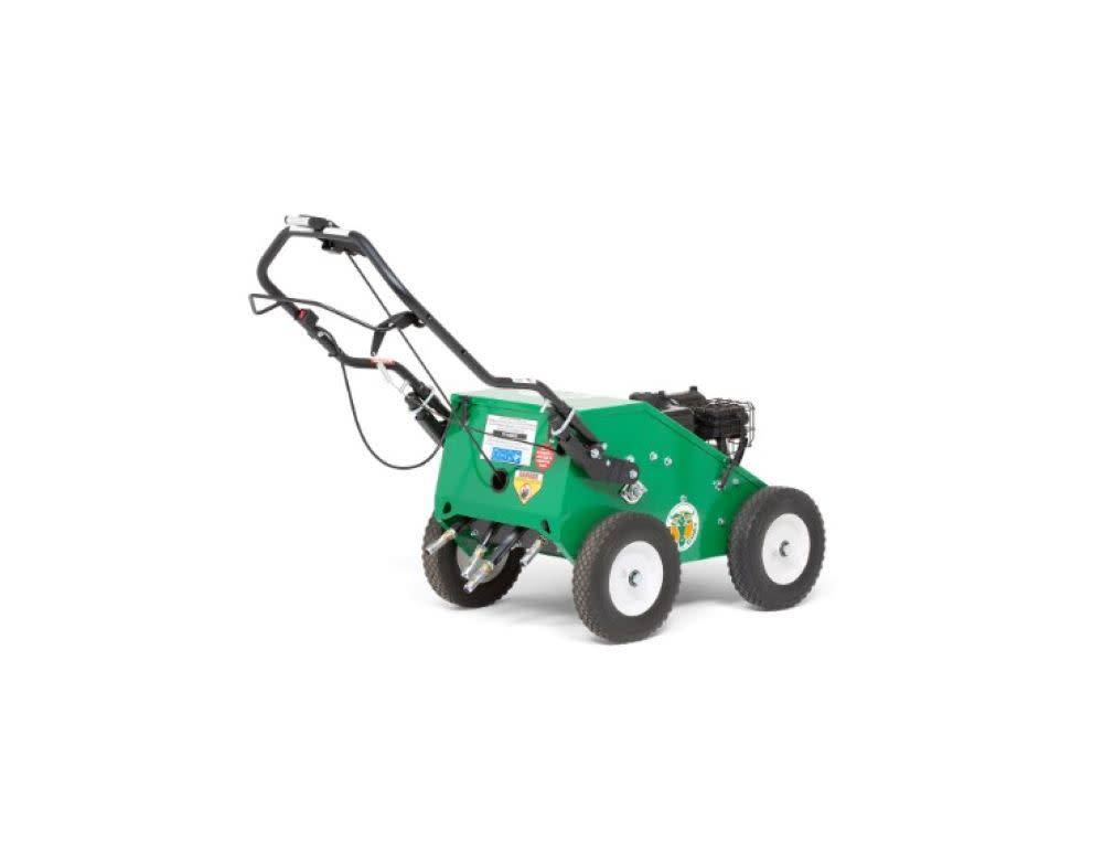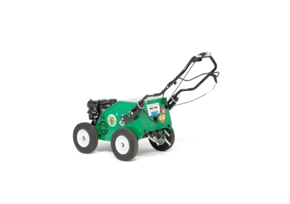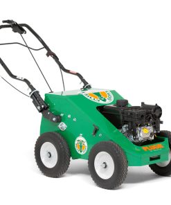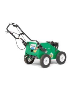 This compact 18″ (46 cm) aerator is ideal for smaller property aeration or hire companies and features reciprocating cam tines that propel the unit forward and drive cores up to 7 cm deep. The unit can aerate up to 2.000m2 per hour, is simple to operate for homeowners, easy to steer without lifting and requires no add-on weights. The easy folding handle allows for compact transport and storage. Only four tines and no chains along with a no-tool removable cover make for easy maintenance. This PL1802V model is powered by a reliable Vanguard? engine.