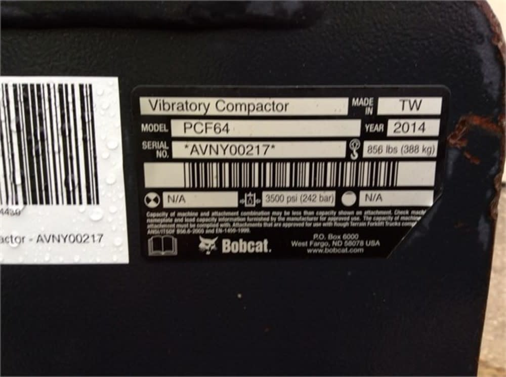 Used 2014 BOBCAT PCF64 Vibratory Compactor for Mini Excavators extends the versatility of Bobcat’s M-Series compact excavators by allowing use for compacting trenches, footings and slab areas as well as driving piles and compacting soil. The compact design allows the compact excavators to compact in hard-to-reach areas.