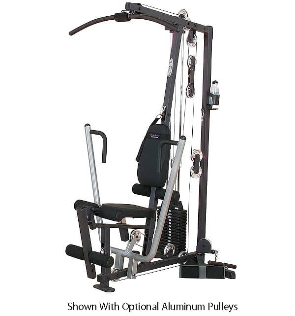 Body-Solid G1S Single Stack GymThe Body-Solid G1S packs a lot of power, strength and durability into the smallest footprint available. Centered on a 160 lb. selectorized weight stack, this gym allows over 40 toning, trimming and strength training exercises. From the multi-grip press arm to the contoured, adjustable seat pad, the G1S gives you more for your money than any other home gym on the market. Body-Solid G series gyms use the highest manufacturing standards and the finest quality pulleys, cables, and upholstery. The entire gym is backed by the best warranty in the industry, the Body-Solid In-Home Lifetime Warranty that covers everything. Forever. Period. Key Features: